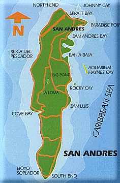 « Haynes Cay/El Acuario: Vor der Ostküste in Höhe des Ortseingangs von San Luis liegendes Inselchen, ideal zum Schnorcheln. Natürliches Aquarium. « La Piscinita: Im Südwesten der Insel gelegenes natürliches "Aquarium". Hier kann man Fische füttern und das Gewimmel von der Wasseroberfläche aus betrachten. « Hoyo soplador ("Blasendes Loch"): Ein von den Wellen gespeister "Geysir". Bei höherem Wellengang folgt einem starken Luftstrom aus einem Loch im Korallengestein eine meterhohe Fontäne Meerwasser zur Gaudi der Touristen. « Cueva de Morgan: Hier soll der berühmte Pirat Captain Morgan seinen sagenhaften Goldschatz begraben haben ... wir haben ihn NICHT gefunden - Eure Chance !!! « Iglesia Bautista: In La Loma gelegen, gilt als die älteste Kirche von San Andrés. Von der Kirchturmspitze aus hat man einen fantastischen Blick über die ganze Insel. « La Laguna: Eine Süßwasser-Lagune in der Mitte der Insel nahe La Loma. Es soll dort auch Kaimane geben, die wir allerdings nicht zu Gesicht bekommen haben.